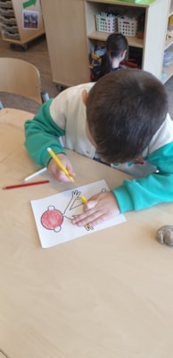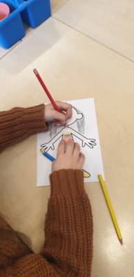 Daarna was het tijd voor de doe-opdracht. De kinderen moesten zichzelf inkleuren met de kleuren van de kanjerpetten. Veel kinderen vertelden dat ze alle petten wel vaak op hebben (bijvoorbeeld de wit met rode pet; dan maak je leuke grapjes, of de wit met gele pet; dan help je andere kinderen of de wit met zwarte pet; dan ben je een goede leider). We hebben herhaald dat het wel belangrijk is dat je altijd de witte pet (in combinatie met een andere kleur) op hebt, want dan ben je te vertrouwen. De kinderen hebben hun eigen tekening mee. Herkent u uw kind in de tekening?
