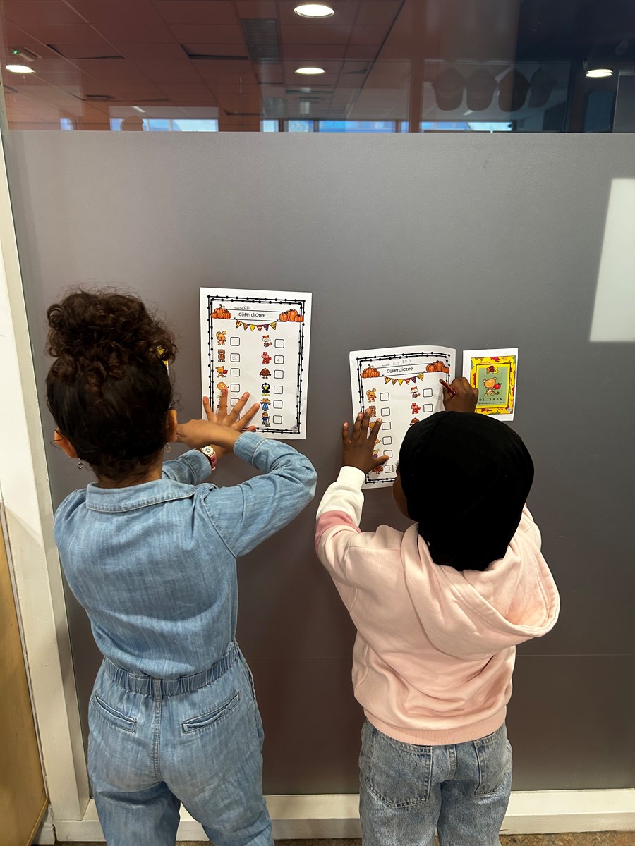 Vandaag ging groep 3 opzoek naar cijfers tijdens het automatiseringskwartier van rekenen. Bij iedere opdracht moesten de kinderen tellen, het ontbrekende getal invullen of het buurgetal raden. Ze waren ontzettend goed bezig!