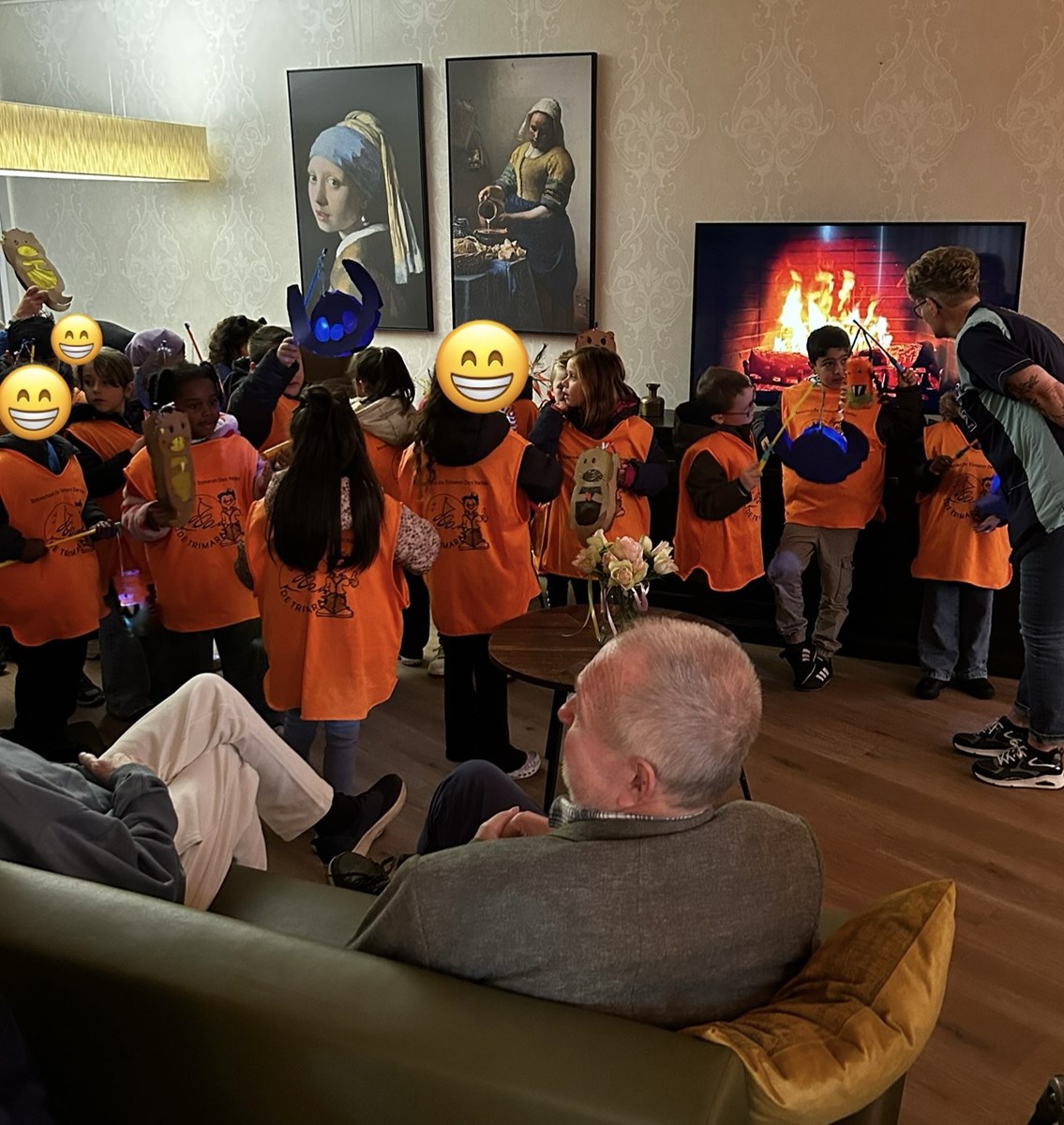 Ook gingen we vandaag naar de Zeester. Daar gingen we op bezoek bij de opa’s en oma’s in de verschillende huiskamers. We lieten de lampionnen zien, zongen liedjes en zijn enorm verwend met allerlei lekkers!
