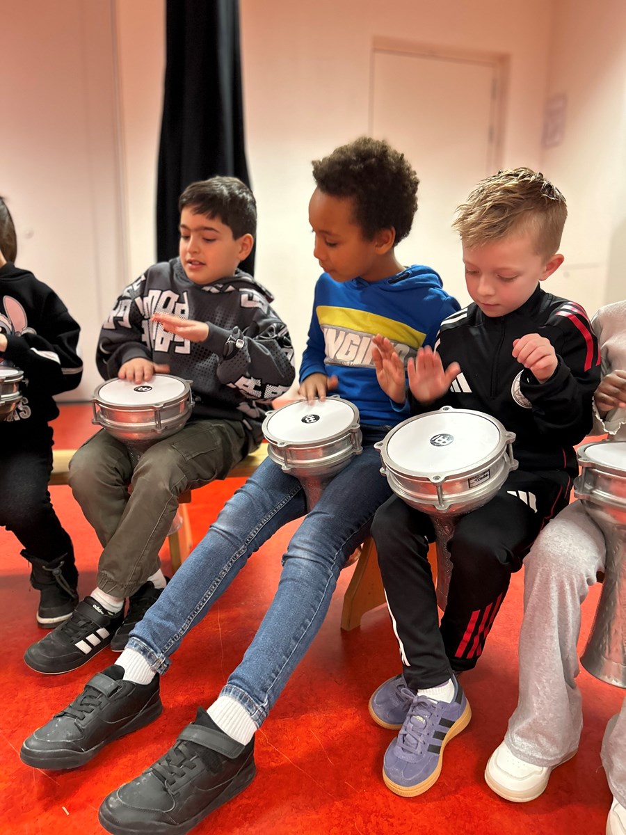 Vandaag hadden wij een percussie workshop van meester Roy van Triade. Wat was dit ontzettend leuk! Met het ritme gevoel van de kinderen zit het wel goed!